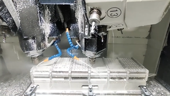 電子設(shè)備散熱器通常采用鋁合金材質(zhì),并需要復(fù)雜的鰭片結(jié)構(gòu)。立式加工中心通過(guò)高速銑削和精密雕刻,可高效完成散熱器的加工,確保散熱性能。